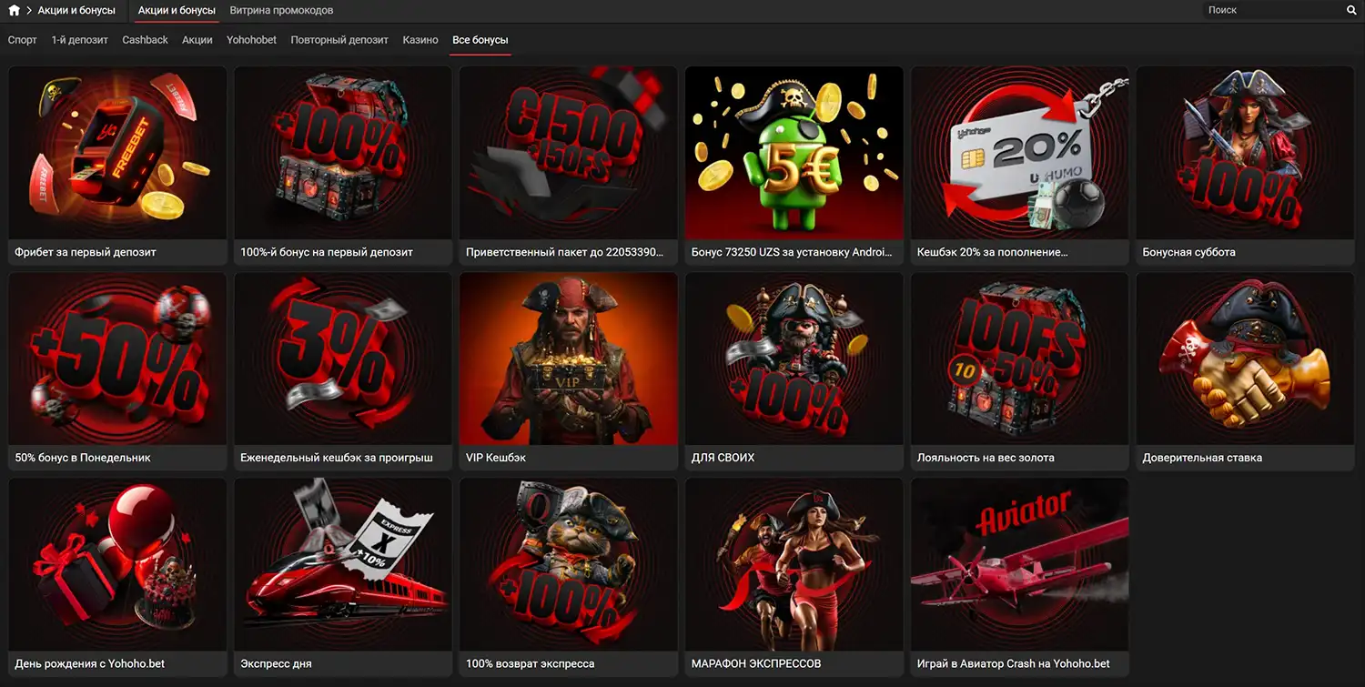 Бонусы и акции Yohoho Bet для игроков из Узбекистана